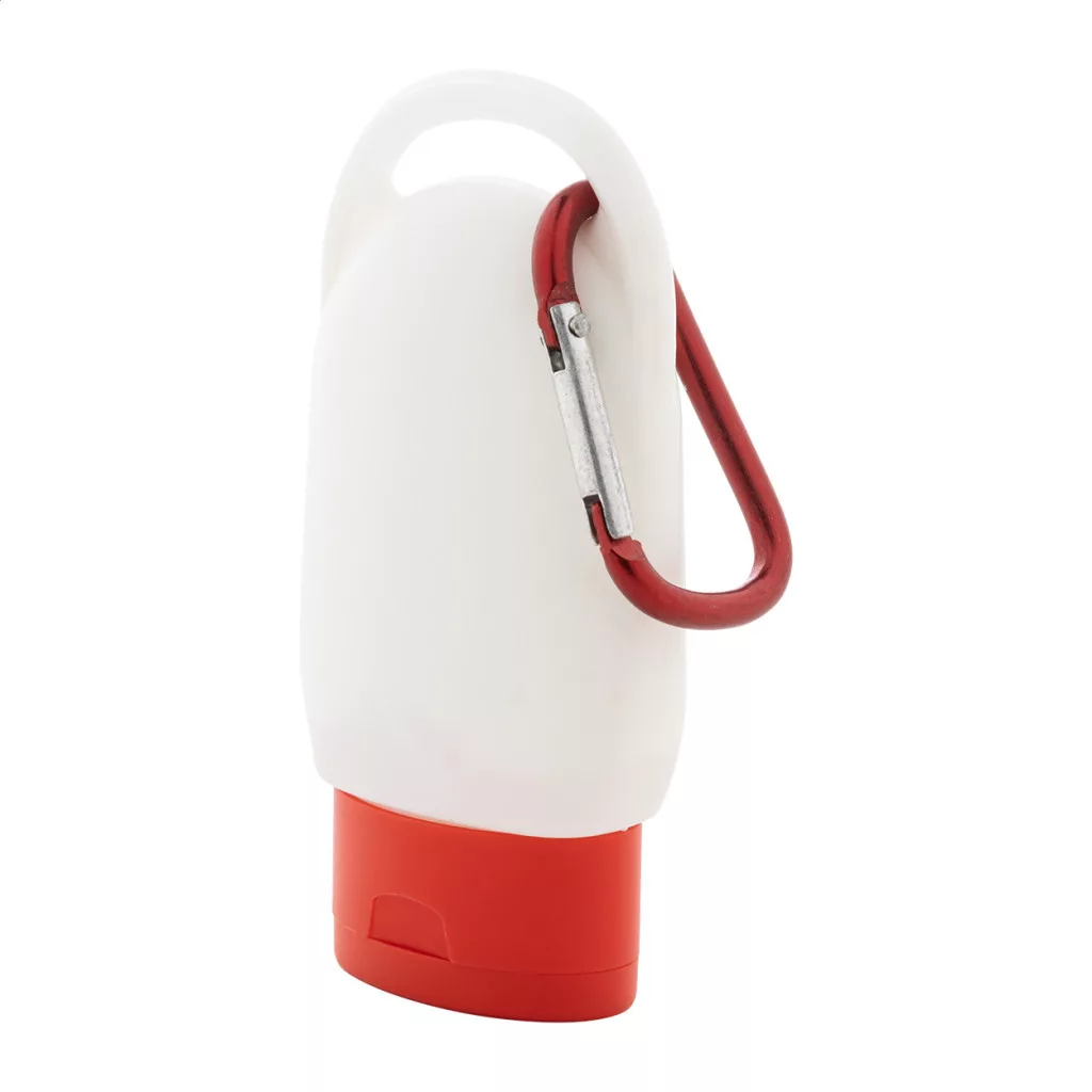 • Praktikus karabiner: A mellékelt karabinernek köszönhetően mindig kéznél lehet a naptej, így nem kell keresgélnie.